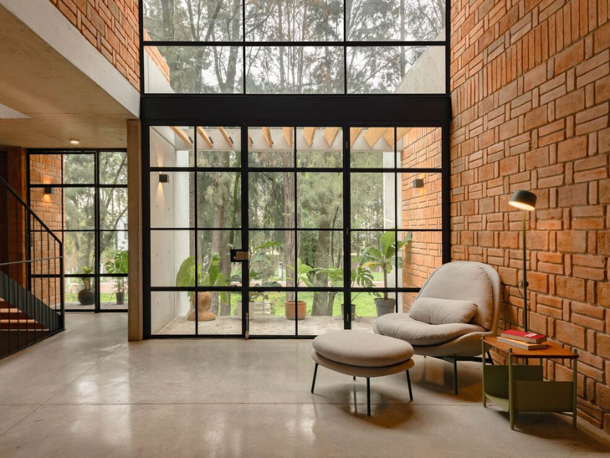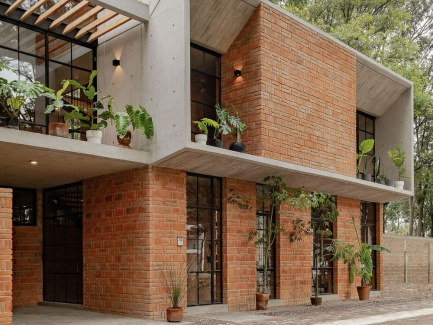 Casa MoMa logra un equilibrio destacado: conjuga lo mejor de la tradición regional, materiales como barro, ladrillo, Talavera con elementos contemporáneos como vidrio, concreto y herrería. Esta dualidad no solo responde a una lógica estética, sino también funcional: se vale de la experiencia constructiva local para ofrecer una vivienda accesible, eficiente y de calidad.