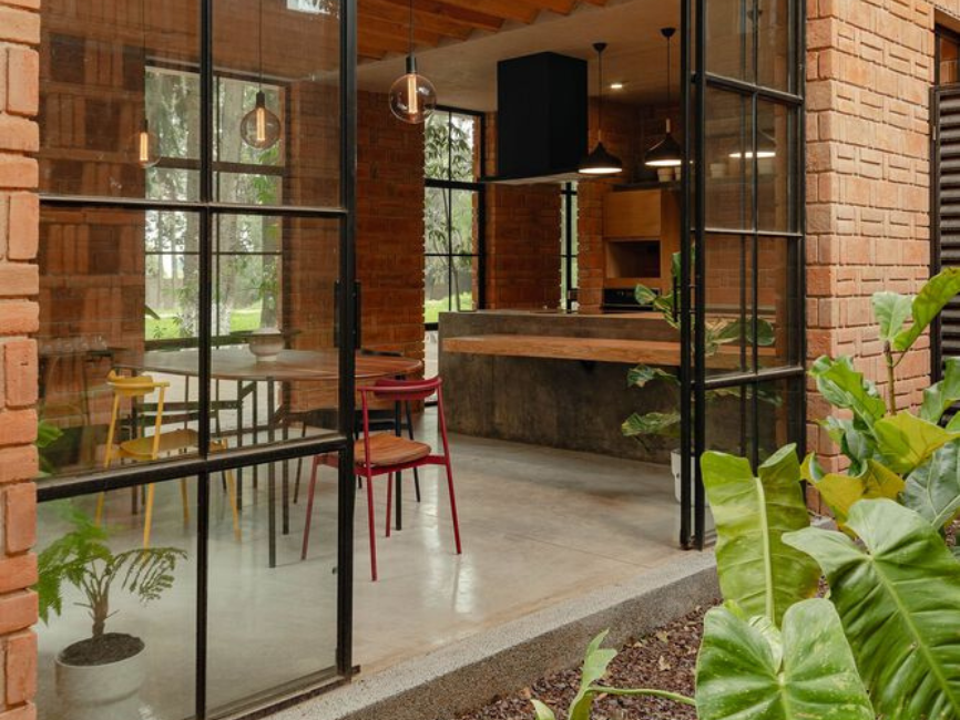 Ubicada en una zona de crecimiento metropolitano, Casa MoMa convive con un paisaje que aún conserva parcelas de uso agrícola, ladrilleras, talleres y microempresas tradicionales. El proyecto surge como respuesta al cambio de paradigmas impuestos por la pandemia: sus propietarios, una pareja joven, adoptaron el trabajo remoto y con ello una nueva forma de habitar.