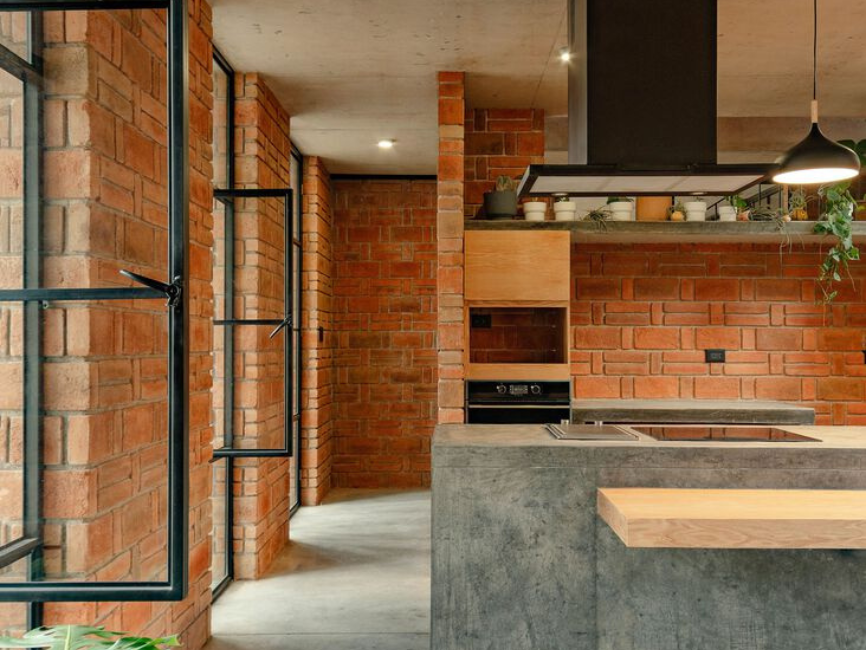 La elección responde a los hábitos del cliente: la cocina, más que la sala, se convierte en el corazón social del hogar. El comedor recibe luz natural en las mañanas y atardeceres, conectándose con el patio y fomentando una vida doméstica organizada alrededor del compartir.