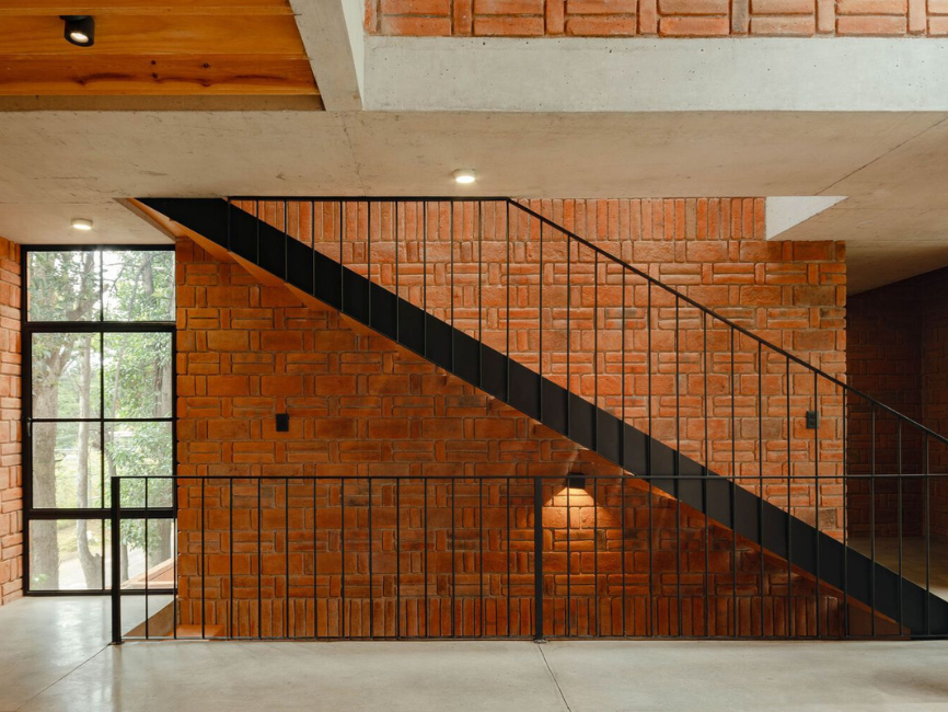 Una de las decisiones más significativas del proyecto es su apuesta por materiales representativos de la región Puebla–Tlaxcala. Ladrillo de barro rojo, azulejos de talavera, combinados con concreto aparente, cristal y herrería forman una paleta que suma tradición, autenticidad y modernidad.