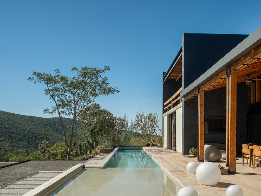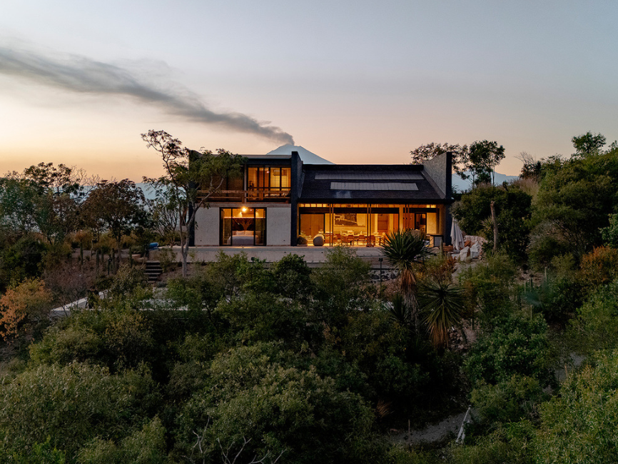 La residencia goza de excelentes vistas hacia los volcanes Popocatépetl e Iztaccíhuatl, así como hacia la Sierra del Tenzo, lo que se convierte en un valor agregado del diseño. La composición de los volúmenes se adapta a la topografía para maximizar estas visuales, permitiendo que las áreas sociales y habitaciones se integren naturalmente con el paisaje circundante.