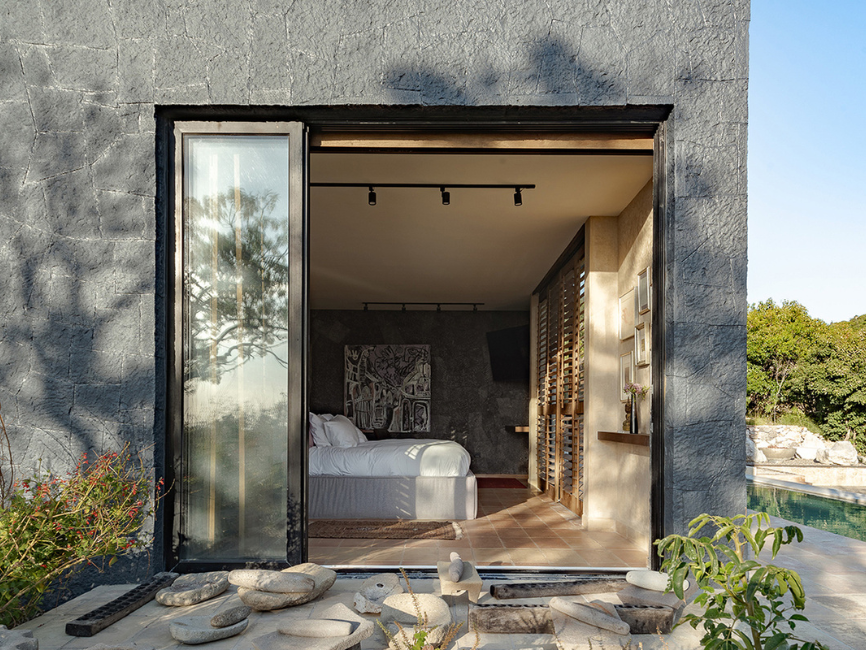 Como parte de la experiencia de descanso y conexión con el entorno, la alberca revestida con chukum se integra al conjunto arquitectónico como una extensión del paisaje. Esta área exterior se conecta con las zonas de terraza y vegetación nativa, creando un espacio de relajación que resalta por su relación directa con la naturaleza.