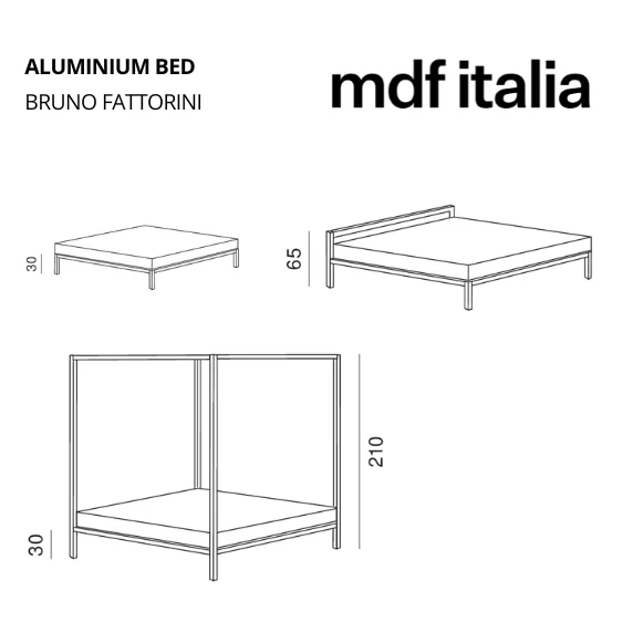 ALUMINIUM BED define la pureza formal y la síntesis estructural creada por Bruno Fattorini, donde la sencillez se transforma en un gesto de gran carácter.