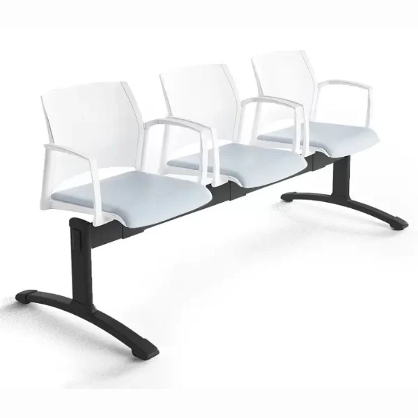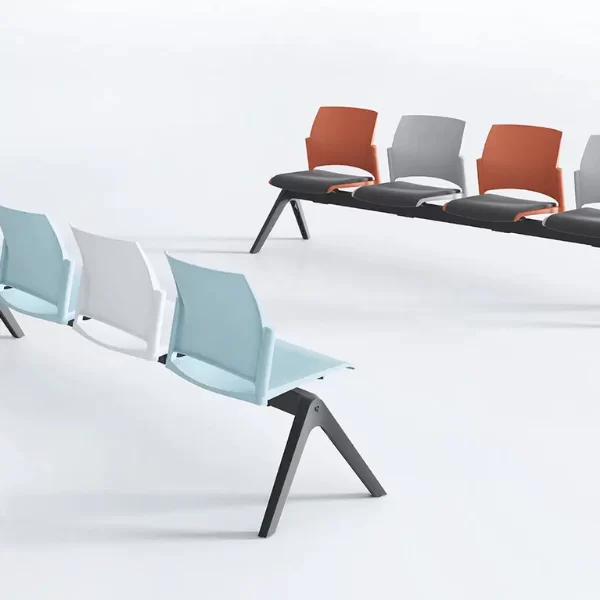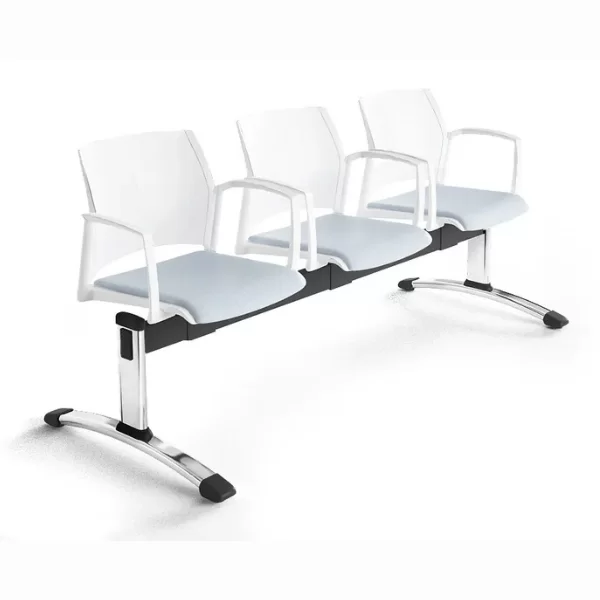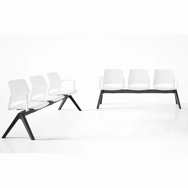 La Banca FRESNO de estructura metálica con patas en acero cromado o pintado en forma de T con niveladores antideslizantes. El asiento y respaldo es una monocarcasa ergonomica lisa o microperforado, opcional al tapizar el asiento en los tejidos de catálogo. También cuenta con opción de respaldo de malla con marco en poliamida.