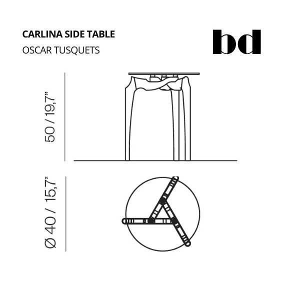 Llamando a la mayor influencia de Carlo Mollino sobre Oscar Tusquets, estas mesas recibieron el nombre de CARLINA. Su superficie transparente deja a la vista las estructuras de soporte. Al igual que las piezas de Mollino inspiradas en la naturaleza, las Carlinas cuentan con puntuados bastidores retorcidos que sostienen el tablero de cristal ahumado.