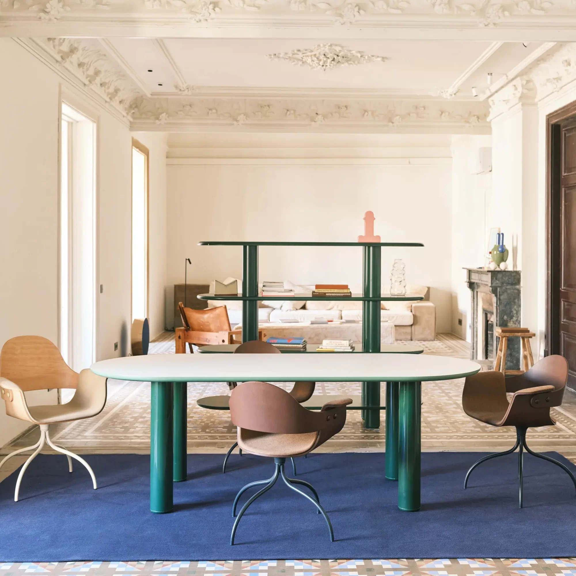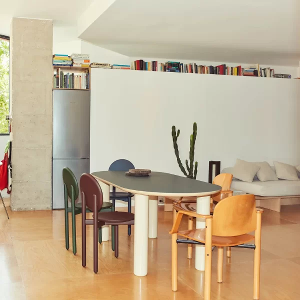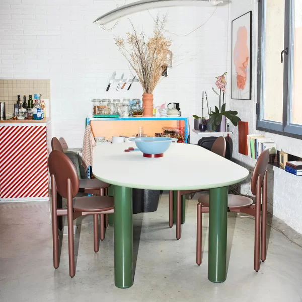 La mesa de comedor ECLIPSO de Jaime Hayon combina una funcionalidad lúdica con un diseño cuidado. Sus patas niveladoras de nailon protegen el suelo y garantizan la estabilidad. Disponible en tonos o combinaciones de colores mixtos, la mesa de comedor se adapta a hogares, salas de reuniones y oficinas, ofreciendo una superficie versátil y dinámica que realza la vida cotidiana con sutil elegancia y una presencia natural.