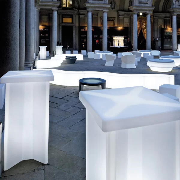X2 es una mesa luminosa diseñada principalmente para el mundo contract, ideal tanto para espacios interiores como exteriores. Su base en forma de X hace que la mesa sea especialmente funcional, aportándole estabilidad y solidez, sin renunciar a un toque de luminosidad refinada. El sobre cuadrado le confiere un diseño lineal y minimalista, por lo que X2 resulta ideal para todo tipo de ambientaciones.