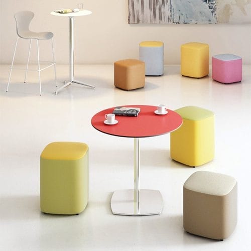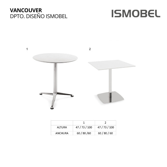 MESA Y PUFF VANCOUVER, disponible en diferentes estructuras cromadas y encimeras en diferentes acabados, Vancouver transmite una fortaleza natural y orgánica, su increíble tamaño destaca con elegancia.