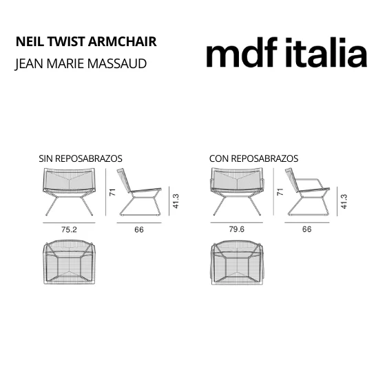 Audaz, versátil y refinado, pero a la vez un ícono de la simplicidad, perfectamente alineado con la estética de MDF Italia. El sillón NEIL TWIST ARMCHAIR destaca por su cuerda trenzada a mano, elemento distintivo del asiento, realzado por un detalle sofisticado: una costura en contraste que subraya su elegancia. Ofrecido en tres opciones de color para el trenzado, el sillón está disponible con base de acero en acabados blanco o negro plomo, con o sin reposabrazos.