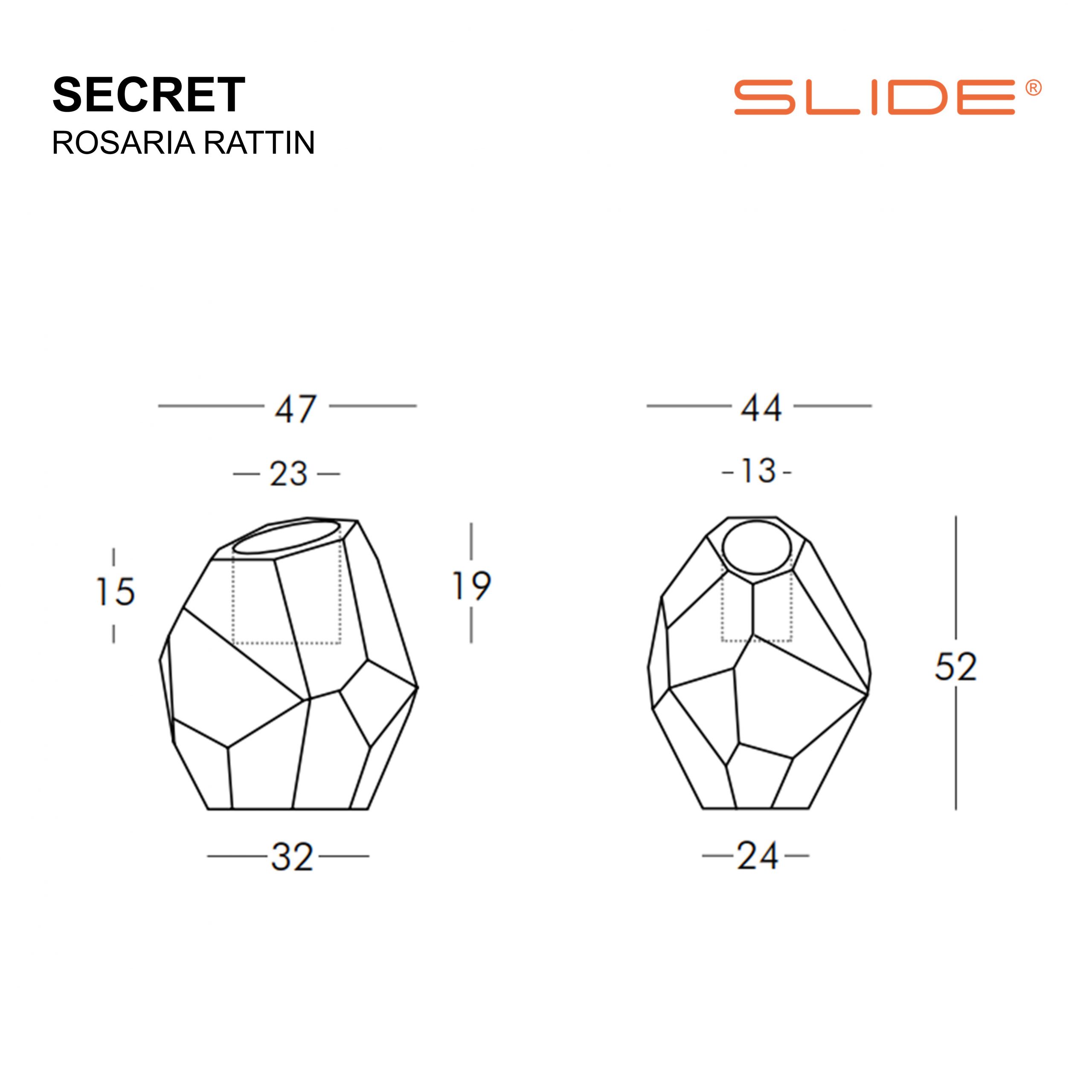 SECRET es una maceta caracterizada por una forma esencial y sofisticada. Gracias a la colaboración con Rosaria Rattin, Slide crea una maceta de polietileno con un diseño irregular, rasgo distintivo de la reconocida diseñadora italiana. SECRET es una maceta multifacética, capaz de captar la atención en todo tipo de entornos.