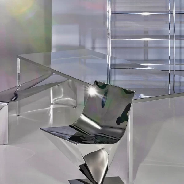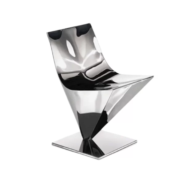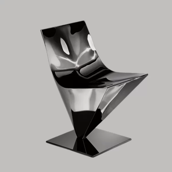 Para la colección The Principle of Lightness, Lofty se reintroduce en su versión de silla, conservando el acabado original de acero pulido a mano.